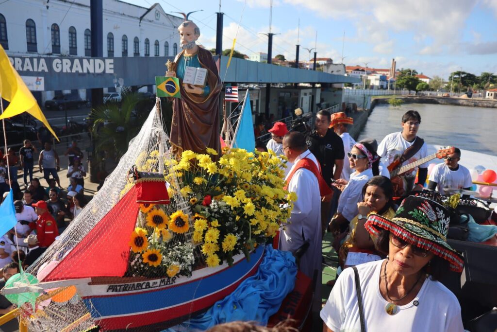 A peregrinação da imagem de São Pedro, que alcançou bairros, como Vila Embratel e Ponta D’Areia, abriu o festejo. “A procura foi grande, então ampliamos o roteiro”, explica Kauana Barata, coordenadora geral. O novenário, de 20 a 28 de junho, trouxe terço às 18h e Santa Missa às 19h, com comunidades convidadas. “Cada dia tivemos um convidado, tornando a celebração mais acolhedora”, diz Kauana.