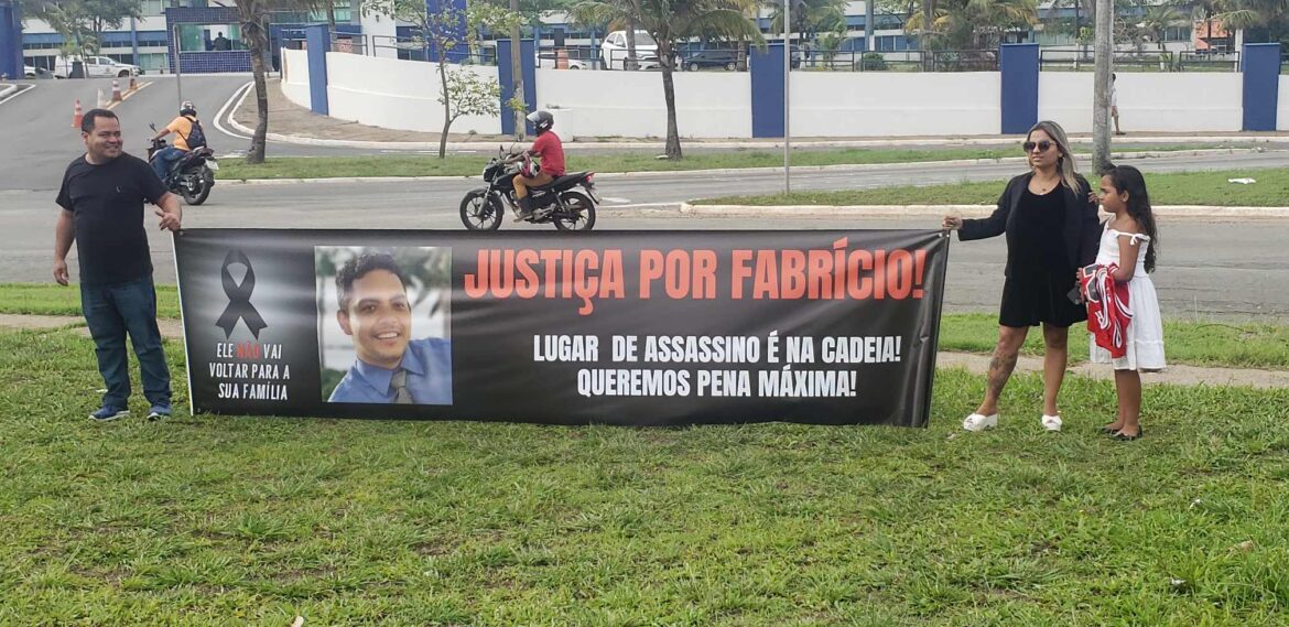 Na manhã desta quinta-feira, 15 de fevereiro, parentes e amigos de Fabrício Rodrigues dos Santos, servidor público de 38 anos assassinado há um ano pelo policial militar Jone Elson Santos Araújo, realizaram uma manifestação pacífica na rotatória em frente ao Comando Geral da Polícia Militar, no Calhau, onde Jone Elson está detido desde o dia do crime. Durante a manifestação, os familiares ergueram faixas exigindo o julgamento e a condenação do assassino.